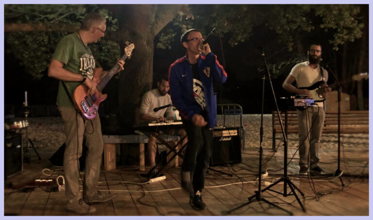 …où nous avons donné notre dernier concert le samedi 18 août et présenté quelques unes de nos compositions originales, tirées de notre album à venir, un bon moment passé avec un public réceptif et chaleureux. On a kiffé et c’était semble-t-il réciproque !